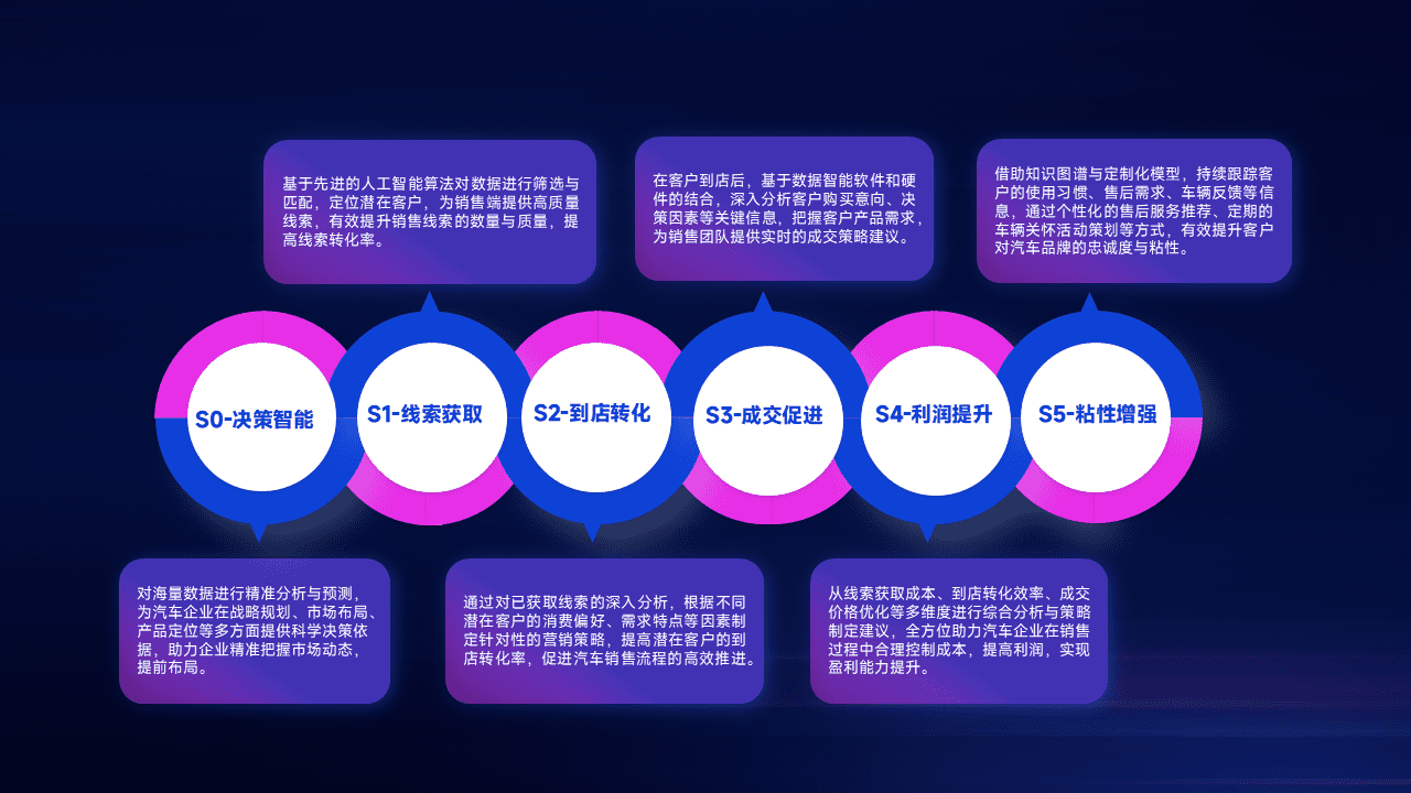 通过拓宽潜在客户来源、、优化线索分配并提高到店转化率,,,以增强销售效率。。同时,,,,利用线索数据不断优化分析模型,,,有效提升转化率,,扩大营销影响力。。。。